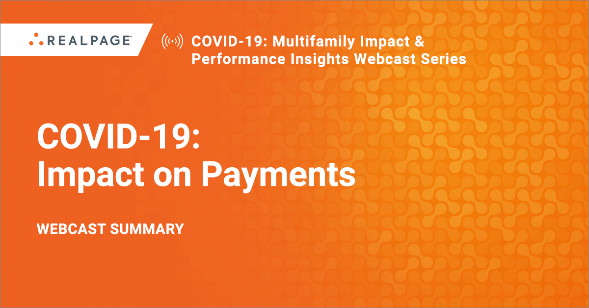 This is a condensed summary from the webcast, COVID-19: Impact on Payments, broadcast on April 28, co-hosted by RealPage VP and Deputy Chief Economist Jay Parsons with special guests: Marcie Williams, President, RKW Residential; Heather Shrader, Vice President, Grady Management; Rafal Krawczyk, Director IT, Sequoia; Erica Reinke, Vice President Property Management, Steadfast Companies; Jason Grovert, CIO, Steadfast Companies; Keri Fields, Assistant Communication Manager, Steadfast Companies; Gina Carter, Vice President Operations Blue Ridge Companies; and Matt Davis, SVP and GM Financial Services Division at RealPage.