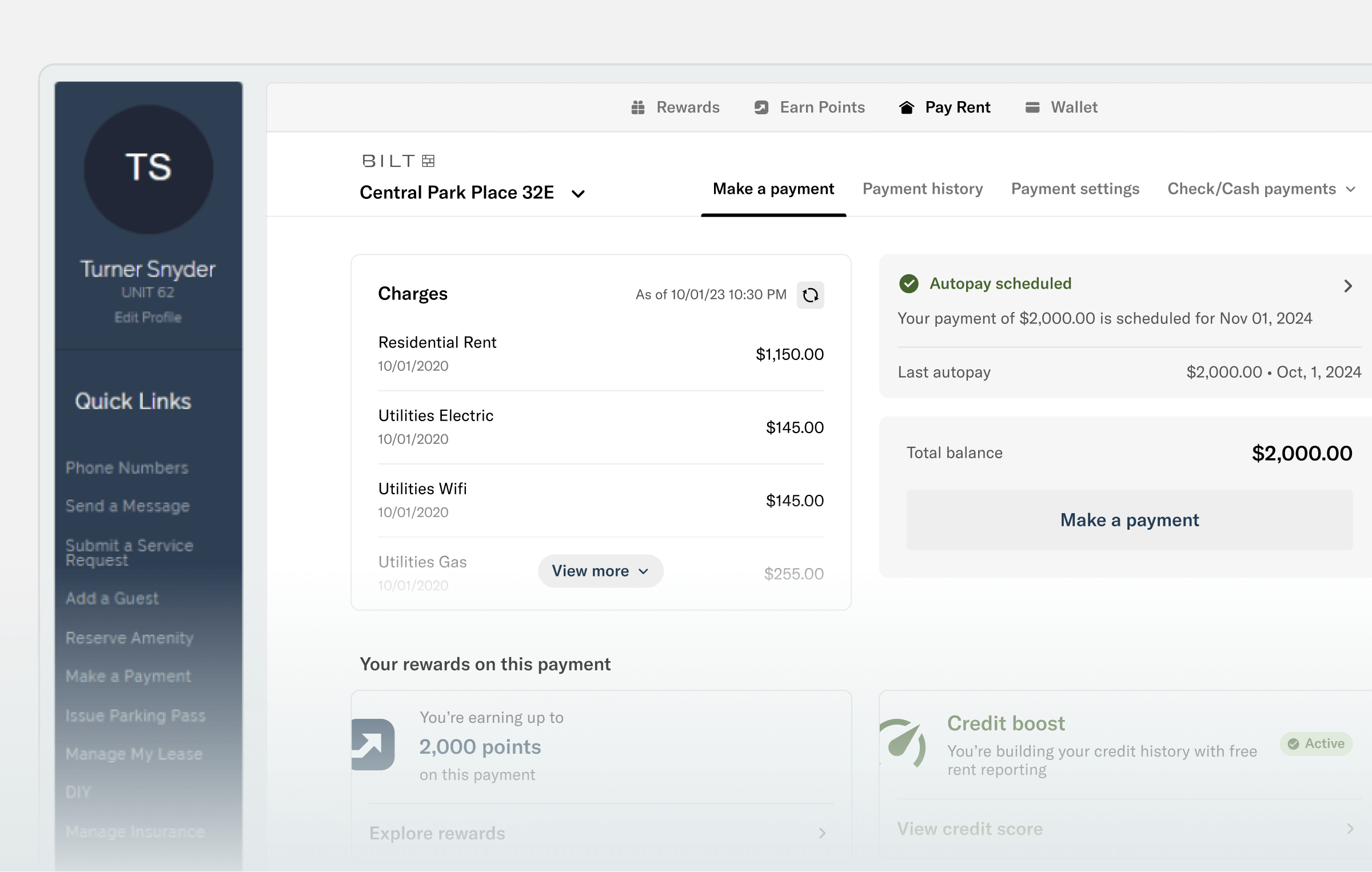 Reward on-time rent payments with rewards. Plus offer residents perks like free credit reporting and monthly new benefits.